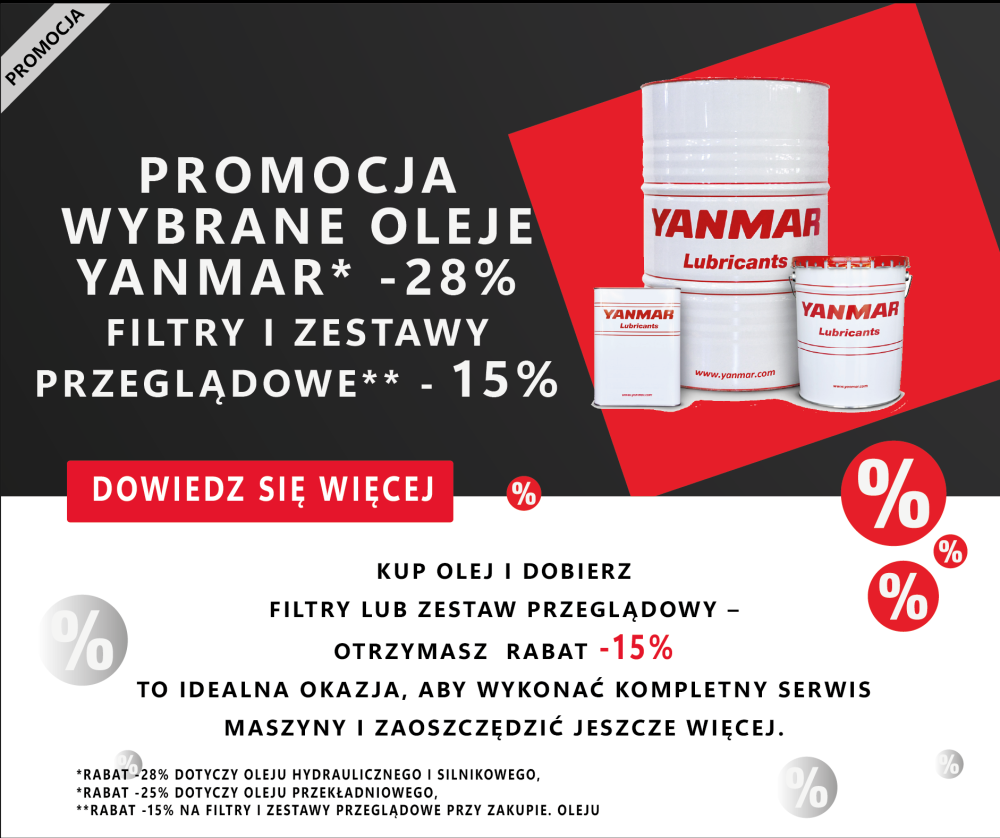DO KOŃCA LUTEGO promocja na oleje Yanmar – rabaty nawet do -28% i filtry i zestawy przeglądowe -15% rabatu!
